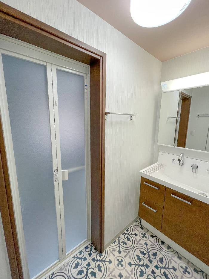 タイル張りの浴室からユニットバスにリフォームしたことで温かくなり、お孫さんも喜んでお風呂に入ってくださると思います。洗面所の内装もとてもいい感じに仕上がったと思います。