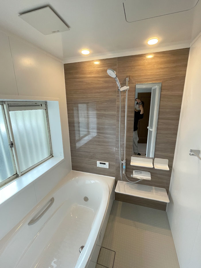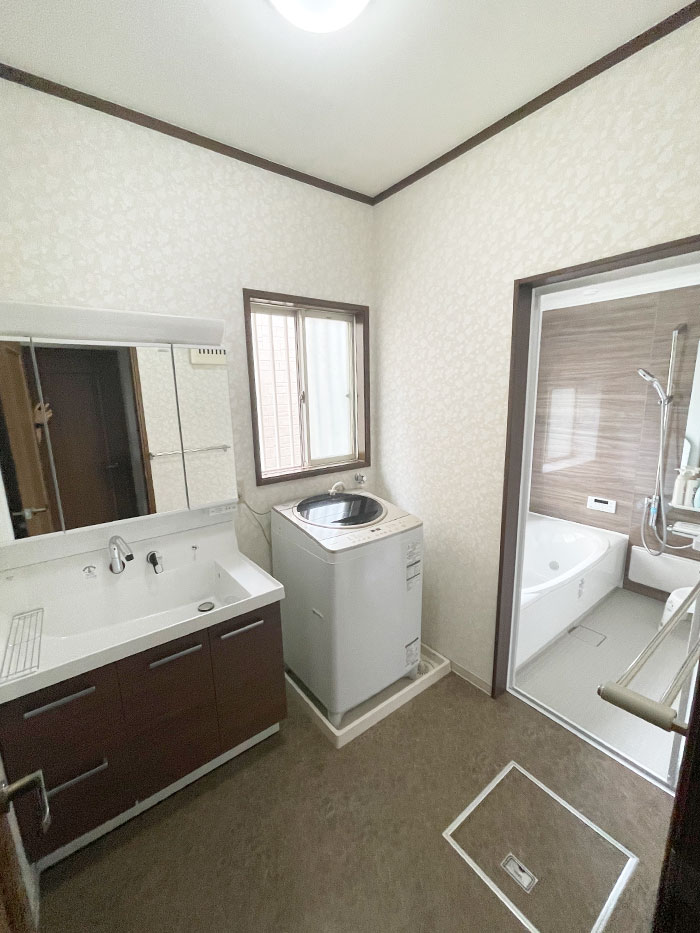 浴室:LIXIL リデア Mグレード 1616サイズ 洗面化粧台:LIXIL ピアラ 間口900mm 3面鏡 給湯器:パロマ エコジョーズ 24号 追い炊き付 |