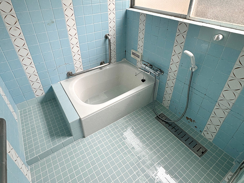 現状の壁タイルを残し浴槽・床タイルは新しいものに替えさせていただきました。
