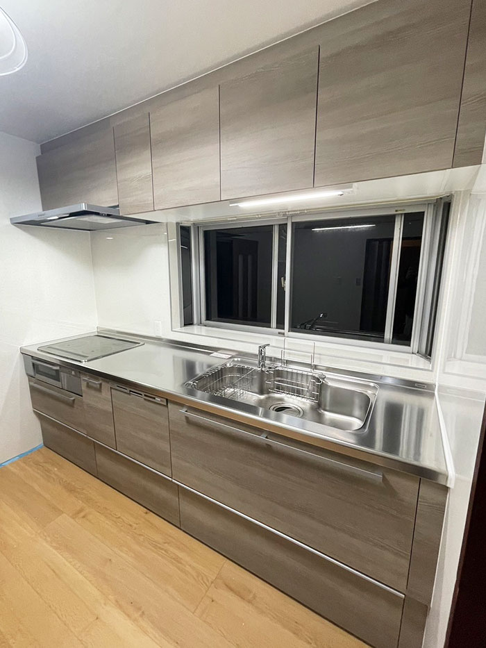 今回は増築部分から既存建物にキッチンを新設するということで、配管・配線の新設が必要になりましたがとても綺麗に仕上がり大変嬉しく思います。