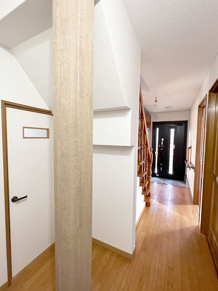 和室の樹脂畳デザインや、床の間・仏間跡のアクセントクロス、階段を降りる時に見えるインパクトのあるクロスなど、とても遊び心が詰まっていて仕上がりを見て私も楽しい気持ちになりました!