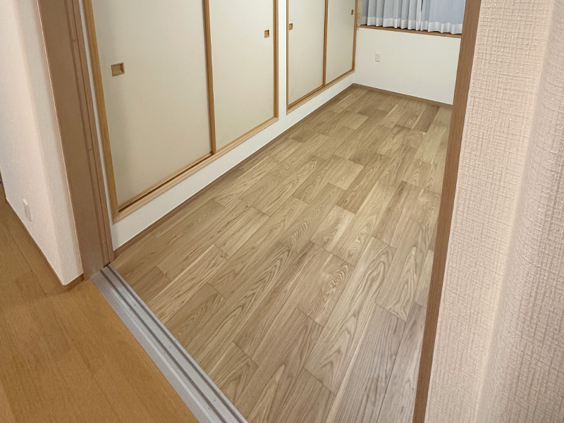 今は2階で過ごされていて将来を見越して1階和室を洋間にし、床をフラットにしたいとのご依頼をいただき工事をさせていただきました。